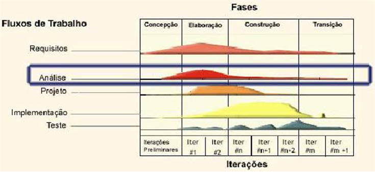 A Análise é o segundo elemento do Fluxo de Trabalho de uma Iteração, neste Fluxo é construído o Modelo de Análise.