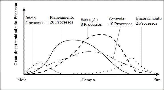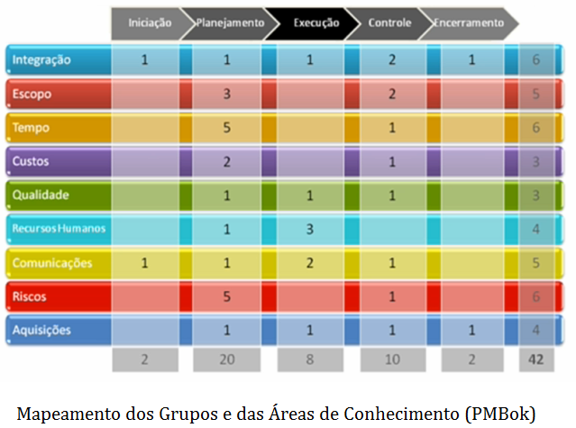 No PMBoK v.4 existem 5 Grupos de Processos, sendo que existem 42 Processos que estão distribuídos nestes 5 Grupos.