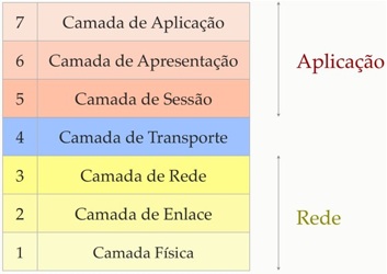 As camadas do modelo OSI podem ser vistas na figura a seguir, vale lembrar que esta modelo é teórico, nenhum dos protocolos existentes, como por exemplo TCP/IP, IPX/SPX ou NetBEUI seguem esse modelo a risca, eles são baseados no padrão OSI e implementam algumas das camadas propostas pelo modelo.